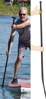 The recent trend in paddle length is to go shorter, but this can lead to a sore back. Before you shorten your expensive paddle, add a Choke SUP HoldTM at the lower position. This will be your "full race" position and your original T-top is still intact to cruise and give your back a break.