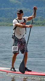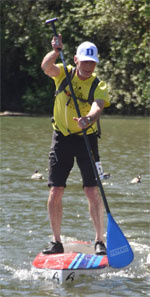 Radical SUP conditions ... so you "get down" your body lowers and hands slide down the paddle shaft. Instinctively, your cadence quickens with the shortened paddle, but dang...no grip for the top hand so I've lost that power and blade control.